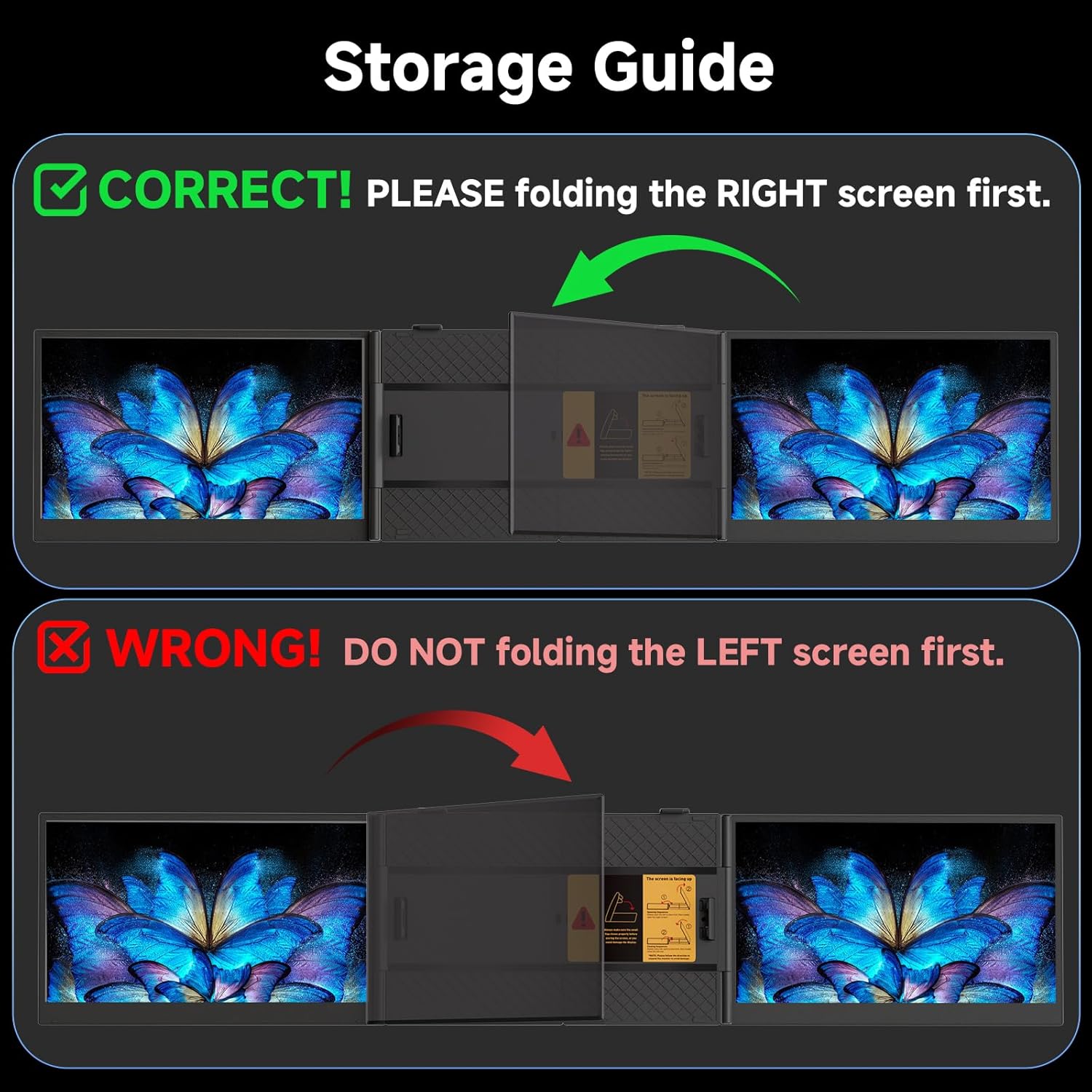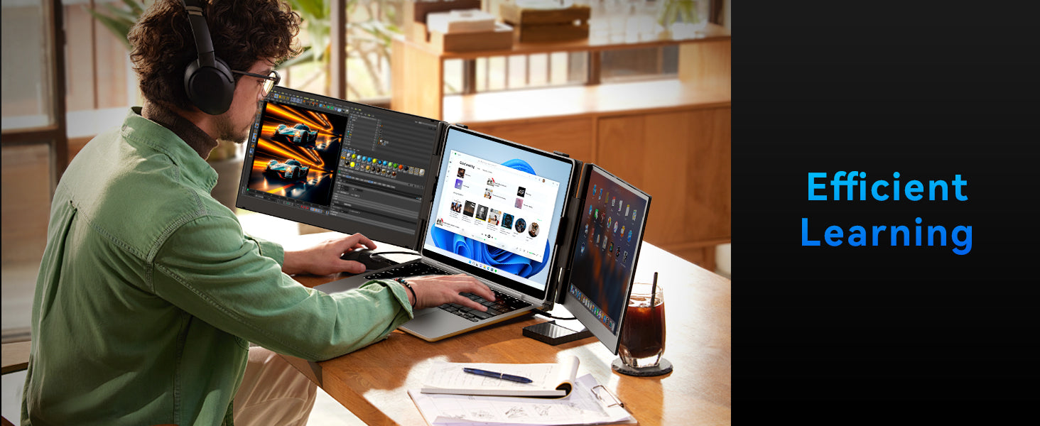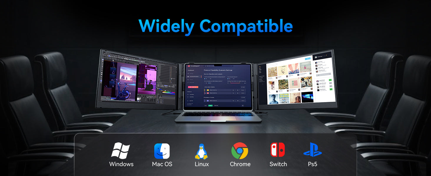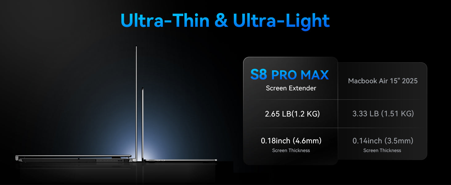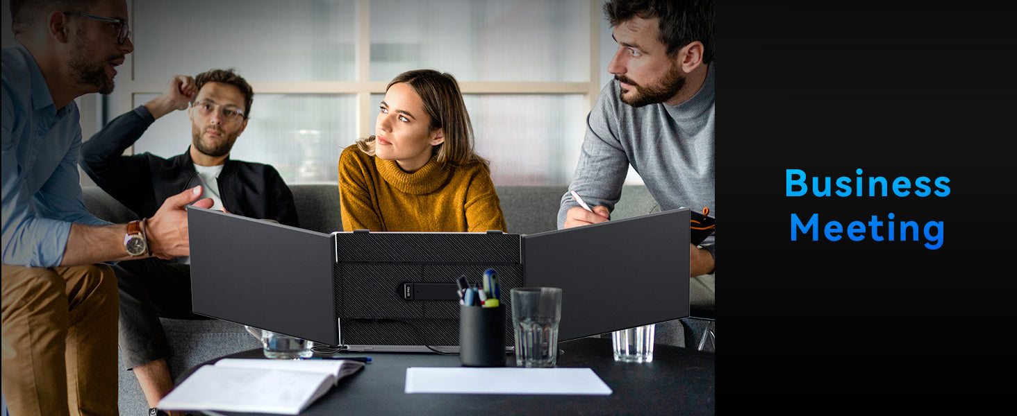 Get ready to experience a game-changing level of portability.At a mere 4.6mm thin and weighing just 2.65lb, this laptop screen extender is significantly lighter (30% less than traditional triple-screen setups tipping the scales at 3.6lb). It is tailored for 15-17.3" laptops to enjoy a comfort extended view world.